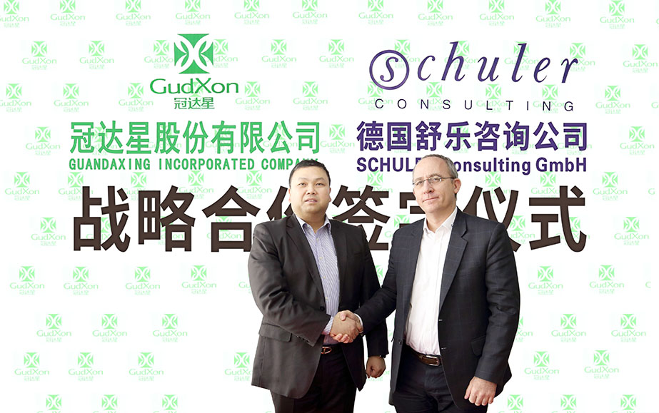 2017年1月22日,在冠達(dá)星股份有限公司總部大樓會(huì)議室,冠達(dá)星股份有限公司董事長(zhǎng)楊建明先生與德國(guó)舒樂(lè)咨詢公司亞太區(qū)總監(jiān)馬克先生進(jìn)行了戰(zhàn)略合作簽約儀式。