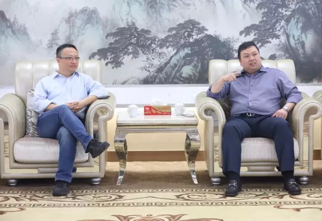 2016年3月8日下午,復(fù)星昆仲資本創(chuàng)始合伙人王鈞在冠達(dá)星集團(tuán)董事長(zhǎng)楊建明陪同下蒞臨冠達(dá)星指導(dǎo)。 復(fù)星昆仲資本創(chuàng)始合伙人王鈞(左)與冠達(dá)星集團(tuán)董事長(zhǎng)楊建明(右)