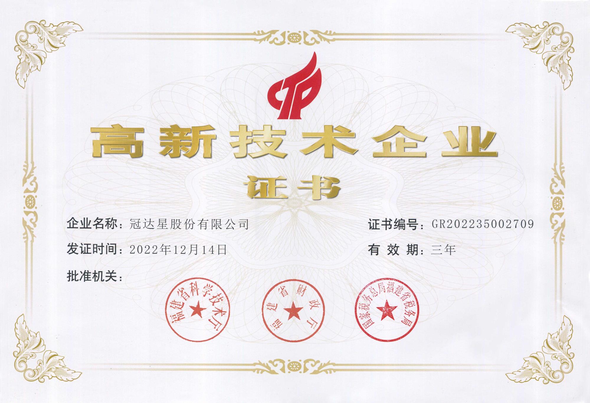 上一條:喜訊 | 冠達(dá)星榮獲“福建省專精特新中小企業(yè)”稱號(hào)
